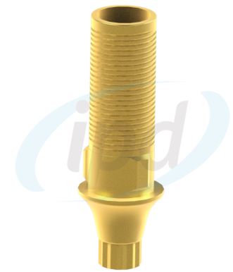 Protetické komponenty na zubní implantáty - nový design Ti-baze CAD CAM s indexací a prefabrikovanými mikroretencemi pro snadné nalepení sólo korunky se slizniční výškou 1.5 mm. Vertikální výška korunkové části- prostor k lepení protetické práce této CAD CAM báze je 8 mm, potřebujeme-li okluzálně nižší, pak je CAD CAM bázi možné zakrátit pomocí zvláštního IPD vodítka s možností zkrátit CAD CAM bázi z 8 mm na 6.5 mm a nebo 5 anebo 3.5 mm. Softvérové knihovny jsou připravené zvlášť pro všechny zmíněné vertikální výšky. Povrch Ti-baze CAD CAM je zpevněný nejmodernějším procesem iontové nitridace - TiN, který zabraňuje opotřebení titanu s jeho výslednou zlatou barvou. Maximální stupeň angulace transokluzálního fixačního kanálu této ti-baze je 28°.