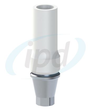 Protetické komponenty na zubní implantáty - můstkové Ti-baze CAD CAM bez indexace a tvarem dosedu nového typu tzv. 3D s prefabrikovanou vertikální výškou korunkové části Interface(u) 6.5 mm . Korunkovou část báze je možné pomocí zvláštního IPD nástroje- vodícího prstence okluzálně snížit a nebo upravit angulaci transokluzálního fixačního kanálu proříznutím vstupu pro systémový šroubovák. K takto upravené můstkové CAD CAM bázi pak nabízíme k dispozici softvérové knihovny pro programy exocad Dental CAD Software a 3Shape Dental System® , kde ke každé jednotlivé slizniční výšce volíme danou softvérovou knihovnu (výšky nabízíme 0.5 mm, 1.5 a 2.5 mm). U této konkrétní Ti-baze je slizniční výška schůdku 2.5 mm . Ti-baze CAD CAM mají prefabrikované mikroretence pro lepší bondování protetické práce ke korunkové části báze a povrch bazí je zpevněný procesem nitridací titanu (TiN) zabraňující opotřeben...