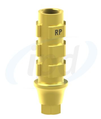 Protetické komponenty na zubní implantáty - nový design můstkové Ti-baze CAD CAM = přesné SW knihovny Korunkovou část Ti-baze můžeme pomocí připraveného vodícího prstence, nástroje společnosti IPD, upravit nejen vertikální výšku do okluze, ale také vytvořit angulovaný vstup fixačního kanálu proříznutím. Následně přiřadíme softwarovou knihovnu, kterou volíme dle slizniční výšky Ti-baze tzv. cuff hodnota a dále vertikální výšku z možných 6.5 - 5.0 nebo 3.5 mm. U této konkrétní Ti-baze je slizniční výška schůdku 3 mm . Ti-baze CAD CAM mají prefabrikované mikroretence pro lepší bondování protetické práce ke korunkové části báze a povrch bazí je zpevněný procesem nitridací titanu (TiN) zabraňující opotřebení. Maximální stupeň angulace transokluzálního fixačního kanálu této ti-baze je 15°. Produkt je licencovaný a kompatibilní s implantačními systémy zubní implantáty INNO Submerged type RP,...