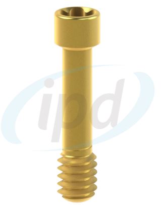 Protetické komponenty na zubní implantáty - zvláštní tzv. TPA fixační protetické šrouby pro angulované transokluzální fixační kanály k přišroubování Ti-baze CAD CAM- Interface(u) a nebo Cast On pilíře na zubní implantáty. Zlatý povrch je výsledkem procesu iontové nitridace titanu (TiN), který zpevňuje titan a zároveň zabraňuje povolení a opotřebení fixačních šroubů. TPA fixační šrouby používáme v případech, kdy je nutné upravit a přizpůsobit úhlovou angulaci transokluzálního fixačního kanálu k přišroubování protetické náhrady za účelem zvýšení její funkčnosti a zlepšení estetického výsledku posunutím fixační kavity z incize směrem palatinálně či orálně. TPA protetické fixační šrouby se používají v kombinaci se speciálním pentalobulárním elipsovitým šroubovákem tzv. TPA, který umožňuje šroubování v jakémkoliv úhlu od 0° do 30°. Fixační šrouby TPA mají původní tvar dosedu/sedla...