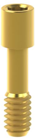 Protetické komponenty na zubní implantáty - fixační titanové protetické šrouby s nízkým profilem hlavy a šestihranem , materiál titan třídy 5 Ti6Al4V dodávaný světoznámou společností ZAPP Co., AG, se zpevněním titanu procesem nitridace titanu (TiN). Výsledkem procesu iontové nitridace je zlatá barva. Proces Nitridace významně zpevňuje povrch titanu, zlepšujeho mechanické vlastnosti, zabraňuje povolení a opotřebení materiálu šroubů. Používáme k přišroubování CAD CAM frézované konstrukce na zubní implantáty a nebo k fixaci nástaveb na zubní implantáty s větším úhlem angulace, kde se vejde pouze šroub s nízkým profilem hlavy. Produkt je licencovaný a kompatibilní s implantačními systémy Nobel Biocare® Branemark System® zubní implantáty Ø 4.1 mm, Neodent® Helix® zubní implantáty Ø 4.1, Neodent® Titamax zubní implantáty Zigomatic® 4.1, Biomet® 3i® Osseotite® zubní implantáty Ø 4.1, Biomet® 3i...