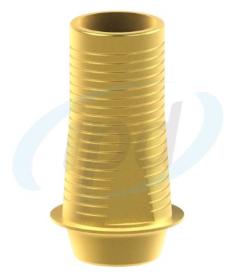 Protetické komponenty na zubní implantáty - můstkové Ti-baze CAD CAM bez indexace a tvarem dosedu nového typu tzv. 3D s prefabrikovanou vertikální výškou korunkové části Interface(u) 6.5 mm. Korunkovou část báze je možné pomocí zvláštního IPD nástroje- vodícího prstence okluzálně snížit a nebo upravit angulaci transokluzálního fixačního kanálu proříznutím vstupu pro systémový šroubovák. K takto upravené můstkové CAD CAM bázi pak nabízíme k dispozici softvérové knihovny pro programy exocad Dental CAD Software a 3Shape Dental System®, kde ke každé jednotlivé slizniční výšce volíme danou softvérovou knihovnu (výšky nabízíme 0.5 mm, 1.5 a 2.5 mm). U této konkrétní Ti-baze je slizniční výška schůdku 1 mm.