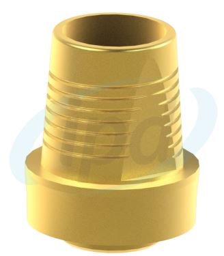 Protetické komponenty na zubní implantáty - můstkové Ti-baze CAD CAM bez indexace a tvarem dosedu nového typu tzv. 3D s prefabrikovanou vertikální výškou korunkové části Ti-baze CAD CAM 6.5 mm . Korunkovou část báze je možné pomocí zvláštního IPD nástroje- vodícího prstence okluzálně snížit a nebo upravit angulaci transokluzálního fixačního kanálu proříznutím vstupu pro systémový šroubovák. K takto upravené můstkové CAD CAM bázi pak nabízíme k dispozici softvérové knihovny pro programy exocad Dental CAD Software a 3Shape Dental System® , kde ke každé jednotlivé slizniční výšce volíme danou softvérovou knihovnu (výšky nabízíme 0.5 mm, 1.5 a 2.5 mm). U této konkrétní Ti-baze je slizniční výška schůdku 0.5 mm . Ti-baze CAD CAM mají prefabrikované mikroretence pro lepší bondování protetické práce ke korunkové části báze a povrch bazí je zpevněný procesem nitridací titanu (TiN) zabraňující opotřeben...